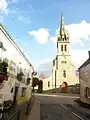 Le clocher, à chambre de cloches et de plan carré, est amortie d´une flèche octogonale, ornée de crossettes et encadrée à sa base par quatre frontons et quatre lanternons[1],[2],[3].