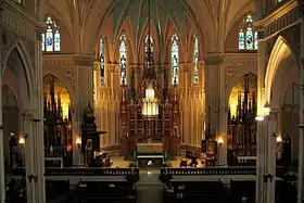 Les magnifiques vitraux sont issus de la maison munichoise Zettler. Deux fenêtres du transept sont particulièrement intéressantes à l'est et à l'ouest. Ce sont les plus grandes et selon certains les plus belles de l'archidiocèse de Chicago. Celle de l'est représente la Pentecôte et celle de l'ouest, saint Michel au jugement dernier.