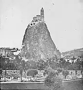 Édifiée sur un piton volcanique, le rocher d’Aiguilhe, de 82 mètres de hauteur, l'église dédiée à saint Michel est accessible par un escalier de 268 marches.