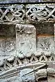 - A la quatrième voussure, des rinceaux en S sont ornés de têtes à leurs extrémités.