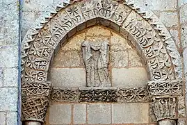 - La troisième voussure est décorée avec des entrelacs et feuillages stylisés.