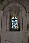 - Baie aveugle nord : Au niveau supérieur, à gauche, la voussure présente quatre saints. De gauche à droite : une abbesse (probablement l'abbesse de l'abbaye des Dames, saint Nazaire et son compagnon saint Celse, et sainte Catherine d'Alexandrie.