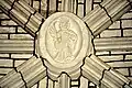 - Au dessus la porte-feint sud, la corniche est décorée avec des rinceaux et feuillage simples.