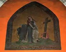 - En 1895 il exécute les deux peintures Christ en croix sur le mur sud de la nef et Jésus et Pierre qui marchent sur l'eau. Ils sont inscrits[10] à l'Inventaire général du patrimoine culturel le .