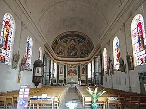 L'église comprend deux chapelles latérales[8]. À gauche, la chapelle saint Joseph où des vitraux représentant, saint Joseph charpentier, la mort de saint Joseph et le Christ au jardin des oliviers. À droite, la chapelle de la Vierge, avec Marie présentée au Temple, la communion de Marie, le couronnement de la Vierge par la Trinité.