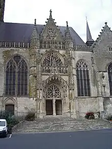 En 1512, Jean Bailly de Biermes œuvrait pour l'édification d'un grand portail latéral de style gothique flamboyant qui ouvrait sur la place et fut terminé en 1531.