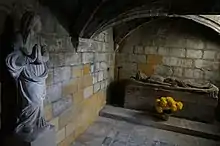 - Dans la crypte, deux statues de femmes et un Christ au tombeau[6] du XVIe et XVIIe siècle ;
