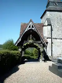 - Le deuxième, celui qui adhère au portail même de l'église, a des poutres sculptées de délicates torsades.