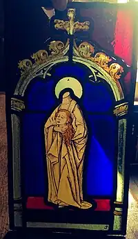 Dans la sacristie est conservé un rondel ou petit vitrail représentant une sainte céphalophore dans un décor d'architecture[5] datant de la deuxième moitié du XVe siècle.