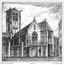 Reconstruite de nombreuses fois avant d'être refaite dans sa forme actuelle au XVe siècle, l'église est un remarquable exemple de gothique flamboyant. Parmi les éléments sculptés de qualité préservés en partie, on trouve huit statues de la tour-clocher.