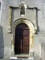 De plan roman, l'église possède une porte de style Renaissance avec culot gothique et chrisme de remploi. Sur sa partie supérieure se tient une coquille de Saint Jacques de Compostelle avec Saint Pierre, le patron de la paroisse[1].