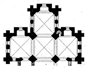 C'est une église a un plan en forme de croix latine avec un sanctuaire carré terminé par une abside ou édicule carrée.
