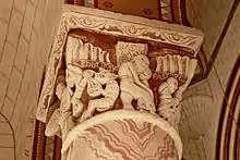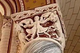 Le sixième chapiteau est le plus célèbre de cette église, et son interprétation est singulièrement compliquée.