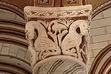 Les chapiteaux du transept sont ornés d'un décor végétal d'aigles et de monstres.