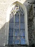 - Un calvaire ornait le sommet de l'arc : la Vierge et saint Jean furent enlevés et placés ailleurs dans l'église. Le Christ en croix au sommet et les statuettes posées aux retombées de l'arc restent en place.