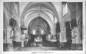 - l'une remontant au XIVe et au XVe avec la chapelle à gauche du chœur dite Notre-Dame de Pitié, la chaire et les trois chapelles latérales gauches.