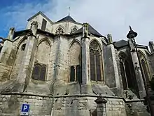 Le chœur de l'église, avec bas-côtés et déambulatoire, est ceinturé de sept chapelles, dont cinq rayonnantes. Les grandes arcades qui séparent le vaisseau central des bas-côtés sont surmontées d’un passage de circulation traversant les piles au-dessous des fenêtres qui occupent toute la surface de chaque travée : les piliers, très élevés, supportent une voûte de grande légèreté[2].