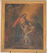 La Vierge de pitié est une pierre polychrome du XVIe siècle[4].
