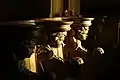 Le , furent installées deux statues composant le groupe dit de l'Annonciation, soit la Vierge et l'archange Gabriel. Ces sculptures sont attribuées au sculpteur tournaisien Jean Delemer (en). Ces deux sculptures sont en pierre blanche d'Avesnes, mesurent environ 1,80 m de haut et furent réalisées en 1428.