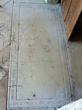 - Une troisième plaque de la même époque sert de seuil au portail latéral du croisillon nord, à l'intérieur de l'église. Seul le mot de « Roberval » demeure lisible[14].