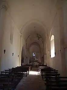 Le clocher mutilé au cours des guerres de religion a été en partie reconstruit. Il a malgré tout conservé des colonnes engagées et des bandes de chevrons d'époque romane [2]. La chapelle nord est de style gothique. La chapelle sud a été reconstruite au XVIIIe siècle.