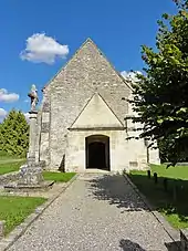 - La plaque scellée dans le sol devant l'autel de la Vierge n'est plus que partiellement lisible. Elle appartient à…ager, mort le , qui par son testament, laisse à l'église la somme de cinquante sous pour donner des brioches. Un personnage en prière est gravé sur la dalle[33].