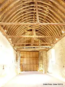 La nef unique et les transepts portent une charpente en chêne dite en nef de vaisseau renversé, (car généralement construite par les charpentiers de marine pendant la saison hivernale). Elle est de facture gothique, et peut-être antérieure au XVe siècle. Elle était recouverte par un lambris aux larges planches enduites d'ocre, dont une porte la date de 1770.
