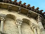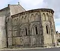 L'abside romane semi-circulaire est la partie la plus ancienne de l'édifice à l'intérieur, présente cinq pans à l'extérieur. A la naissance du chœur, deux tourelles pleines servaient autrefois de contreforts. Les chapiteaux des colonnes sont décorés de feuillages, de personnages ou d'animaux fantastiques.