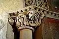 Le chapiteau et sa colonnette ne sont pas romans. Ils n'existaient pas en 1847 (d'après un dessin[4] de Léo Drouyn). Cette contrefaçon néo-romane date de la restauration du XIXe siècle.