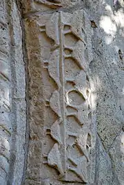 Au début de l'arc, il y a des claveaux disparates, à décor d'entrelacs et damiers, sans aucun rapport avec l'histoire. Ils sont des pièces de rafistolage, insérées lors d'une réparation tardive.