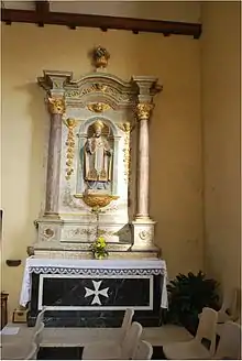 L'autel contemporain comporte une belle table de marbre noir. Dans son socle une niche a été aménagée pour recevoir la statuette reliquaire de saint Siméon le Stylite, patron de l'église et patron de la commune de L'Huisserie.