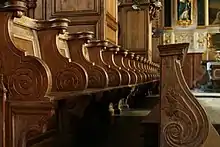 Bien qu'elle ne fut ni collégiale ni abbatiale, l'église abrite un ensemble de stalles (1757-1762) concourant à la perspective du chœur. Douze d'entre elles furent réalisées par le même Thory. L'ensemble a fait l'objet de classements au titre des monuments historiques depuis le [25].