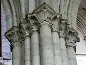 On constate néanmoins une évolution de la sculpture des chapiteaux, d'est en ouest, sachant que la construction débute par le chevet, et dans le chœur du bas vers le haut.