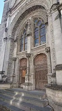 Vers la fin du XVe siècle, la population continue d'augmenter[2], exigeant de nouveau une église plus vaste. Sont ajoutées à nouveau plusieurs parties. Tout d'abord la nef, avec ses arcs gothiques et romans, est très élevée. L. Palustre souligne une certaine maladresse de l'architecte. Les clefs de voûte sont ornées d'écussons d'armoiries. Ensuite, une partie méridionale est bâtie, avec plusieurs chapelles. Sur la première, on peut y lire « Baptizate cos in nomine Patris et Filii et Spiri'us Sancti », la deuxième chapelle quant à elle est profondément décorée et possède à l'intérieur une petite tribune. Une troisième chapelle possède une clef de voûte avec un médaillon non déchiffré. À la partie méridionale s'ajoute la partie septentrionale qui est assez particulière. Elle a une forme assez étrange et son intérieur mélange roman et gothique, avec, une nouvelle fois, des clefs de voûte très décorées. Un autel s'élève dans une chapelle de cette partie septentrionale. À l'extérieur, on aperçoit des peintures effacées dans leur quasi-totalité, cependant, un document permet de savoir quand ces peintures ont disparu : « Le M. le curé Gayaud a remontré à ses paroissiens que l'église de Saint-Symphorien avait besoin d'être blanchie dans toute son étendue, voûtes, piliers, chapelles, sacristie, murs, plafonds, etc. que toutes ces réparations doivent être supportées par la fabrique, que M. le curé offre néanmoins d'en payer la moitié. »[3] Cependant, la plus belle construction du temps de la Renaissance se trouve à l'extérieur de l'église, le portail. Probablement dressé en 1531 d'après les observations de L.Palustre, tandis que L. Bosseboeuf découvre lui que le portail a été commencé en 1526, et finalement achevé en 1531. Il est considéré comme un véritable chef-d’œuvre totalement décoré. On peut y lire les inscriptions « In domum Domini laetantes ibimus ! ». Quatre vers, toujours en latin, ornent le portail. Chaque partie du portail est dotée de dessins ou inscriptions, certains vouées à Symphorien, d'autres à la Sainte Vierge, des passages du livre de l'Ecclésiaste.