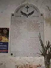 - À droite de l'entrée de l'église une plaque de marbre blanc présente les morts de Guyancourt pendant la Première Guerre mondiale. Les morts et disparus sont classés par année.