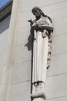 Sculpteur, Gabriel Rispal est l'auteur de plusieurs œuvres dont les statues de la Vierge à l'enfant et de Saint Joseph en tenue de charpentier à l'intérieur, et surmontant le porche d'entrée, une statue monumentale de 4 mètres de Sainte Agnès serrant sur son torse un agneau, évoquant Jésus Christ, à qui elle a voué sa vie[2],[3].