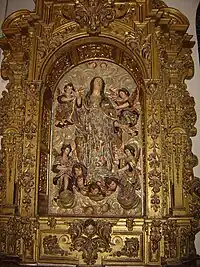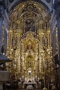 L'autel majeur, somptueux retable baroque, est de Lucas Valdés, daté entre 1710 et 1715 [11].