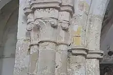 Sur le mur méridional se sont conservés quelques fragments d'une frise à dents-de-scie qui datent du XIIe siècle. Le même mur présente une fenêtre murée de l'époque Renaissance. Elle est entourée d'archivoltes et de pilastres avec chapiteaux, l'architrave est décorée de deux angelots qui portent un écusson.