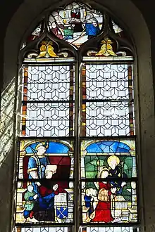 Sur le vitrail du transept méridional sont représentés les donateurs avec leurs enfants et leurs patrons. Le panneau gauche montre Étienne Clément, le propriétaire du domaine de la Salle de 1534 jusqu'à 1542, à côté de lui son fils et derrière eux, saint Étienne. Sur le panneau droit est représentée son épouse, Louise, avec leurs trois filles, et le roi saint Louis.