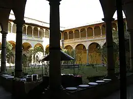 Attenant à l'église se trouve le cloître qui est caractérisé par un double ordre d'arcades superposées. Sur le côté ouest, au-dessus de la loggia du XVIIe siècle, le couronnement original du couvent est encore visible. Sous les arcades inférieures s'ouvrent deux grandes trifores qui avec la porte trilobe éclairent la salle capitulaire du XIVe siècle. Des 42 lunettes, reproduisant les scènes de vie de la Beata Margherita della Metola, cinq sont attribuées à Giovanni Battista Pacetti dit « Lo Sguazzino », peintre né à Città di Castello en 1593.