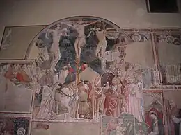 Une fresque de l'école siennoise du XIVe siècle, représentant une Crucifixion, se trouve dans la chapelle dédiée aux morts à la guerre.