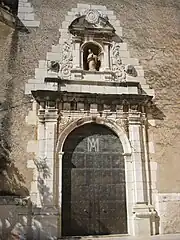 Sur la façade latérale qui donne sur la croisée, du côté de l'épître, un portail avec un arc à plein cintre flanqué par deux pilastres adossés et un entablement classique, et dans la partie supérieure une niche avec une statue de la Immaculée Conception surmontée par un arc segmenté. Ce portail pourrait avoir appartenu à l'édifice précédent[7].