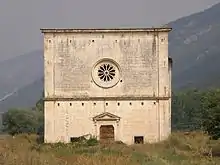 La dédicace à Santa Maria delle Grazie est fréquente dans la région des Abruzzes : à ne pas confondre avec l'église homonyme Santa Maria delle Grazie également située sur la commune de Navelli.