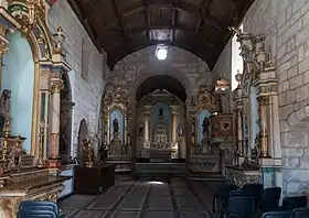 Au début de la nef, on trouve deux autres autels de style manuélin, en bois peint en blanc et toujours décorés de guirlandes de bronze. Tous deux sont rehaussés d'un important retable richement décoré. Sur le tabernacle décoré d'un cœur du Minho une statue représente le martyre de saint André. L'autre présente directement sur la traverse une statue d'un Christ aux Outrages [6] en pierre, de facture naïve, qui paraît plus ancienne.