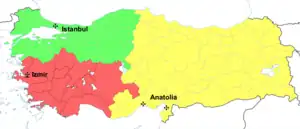 - Le rite romain, utilisé par trois circonscriptions ecclésiastiques de l'Église latine, à savoir, l'archidiocèse métropolitain d'Izmir et deux vicariats apostoliques (Anatolie et Istanbul / Constantinople).