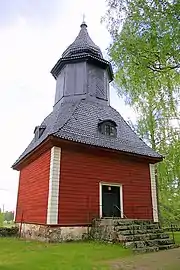 Conçue par Mats Åkergren, l'église en bois est construite en 1799[1]. le clocher est construit en 1800 aussi selon les plans de Mats Åkergren[1]. Les trois tableaux du retable peints par J.P. Kihlmarck représentent : Le christ sur le mont des oliviers, l'ascension, nuages .