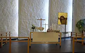 La chapelle du nouveau centre paroissial et les vitraux de la salle paroissiale ont été conçus par l'artiste Carolus Enckell. Le clocher de l'église a été renové mais les cloches sont les mêmes. Les phrases « Venez car tout est préparé », « Servez le Seigneur avec joie » et « Gloire à Dieu au plus haut des cieux » y sont inscrites[1].