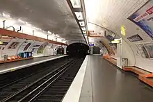 La station est de configuration standard : les quais sont séparés par les voies du métro situées au centre et la voûte est elliptique. Ils sont aménagés dans le style « Andreu-Motte » : ils possèdent une rampe lumineuse, des banquettes en carrelage plat et des sièges « Motte » orange. Des carreaux en céramique blancs et plats recouvrent les piédroits, la voûte et le tympan. Les cadres publicitaires sont métalliques et le nom de la station est écrit avec la police de caractères Parisine sur plaque émaillée.