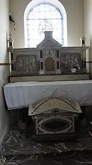 - À l'extrémité du bas-côté sud, se situe un autel dédiée à la Vierge Marie