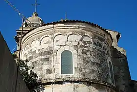 L'église possède un chevet roman semi-circulaire réalisé en pierre de taille.